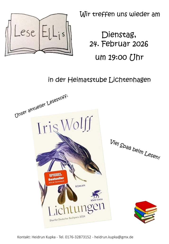 Das nächste Lese-ElLi-Treffen findet am 24. Februar 2026 um 19 Uhr in der Heimatstube statt.